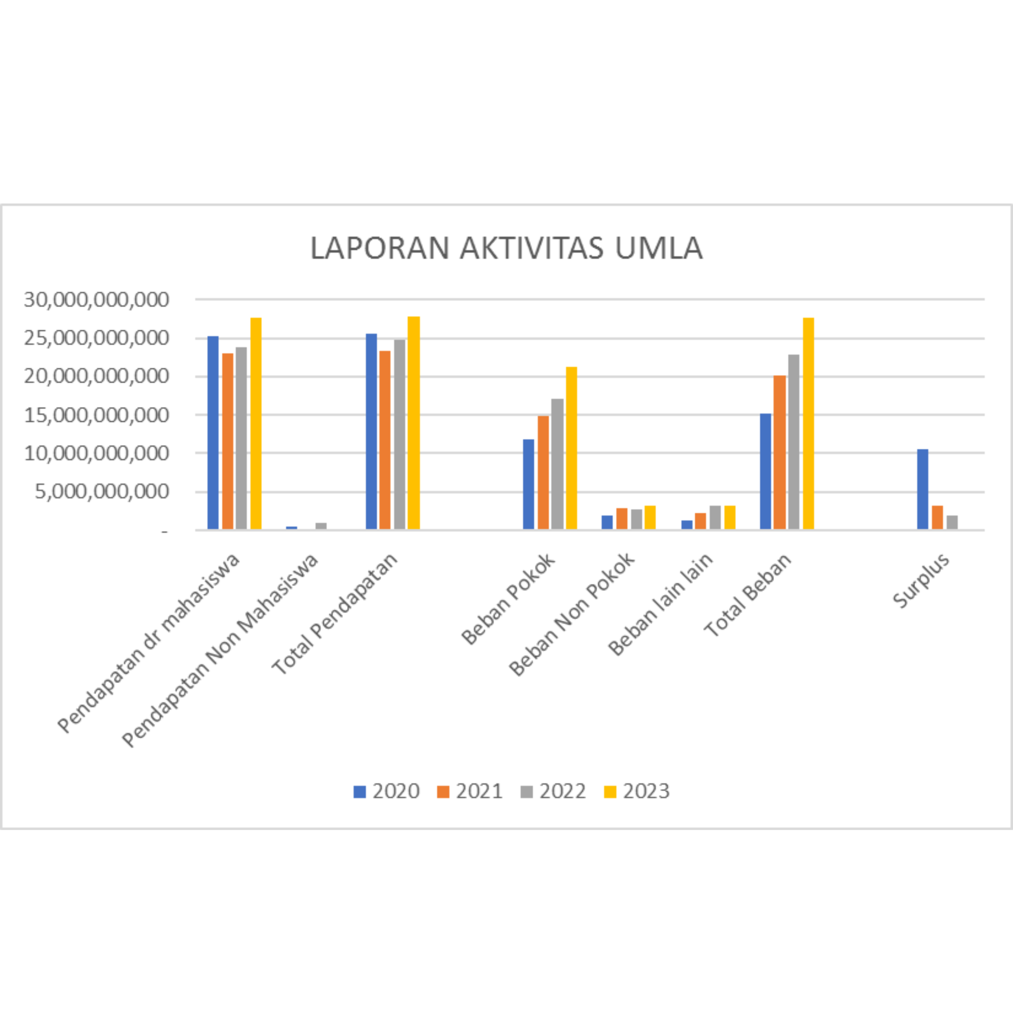 Kesehatan Keuangan: Peningkatan yang signifikan dalam aset berbanding lurus dengan aktivitas yang meningkat. Hal ini menunjukkan bahwa UMLA tidak hanya meningkatkan pendapatan tetapi juga mengelola asetnya dengan baik, yang penting untuk kesehatan keuangan jangka panjang.